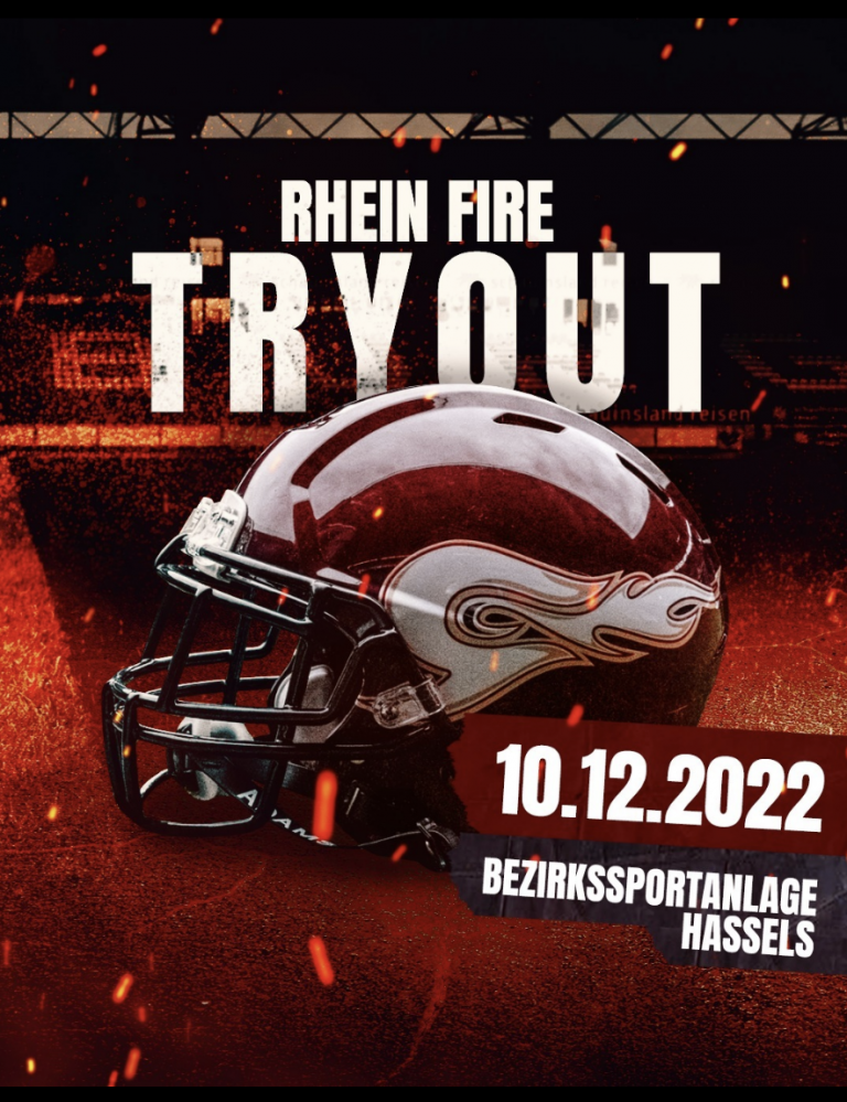 Rhein Fire Spieler Tryout am 10.12 im Düsseldorfer Süden auf der Anlage der SG Benrath-Hassels – Teilnahmebedingungen online Alle Spieler, die in der nächsten Saison das Trikot des Football-Teams von
