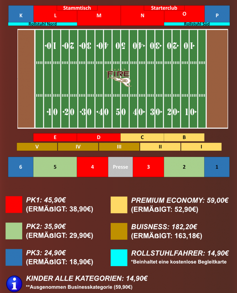Gemeinsam mit dem Ticketpartner Eventim bietet Rhein Fire Fans eine einfache Möglichkeit, sich frühzeitig Plätze zu sichern. Tickets sind ab 24,90 Euro erhältlich. „Familien profitieren zusätzlich von attraktiven Rabatten und Angeboten“, so Ticketmanager Spencer Preece.