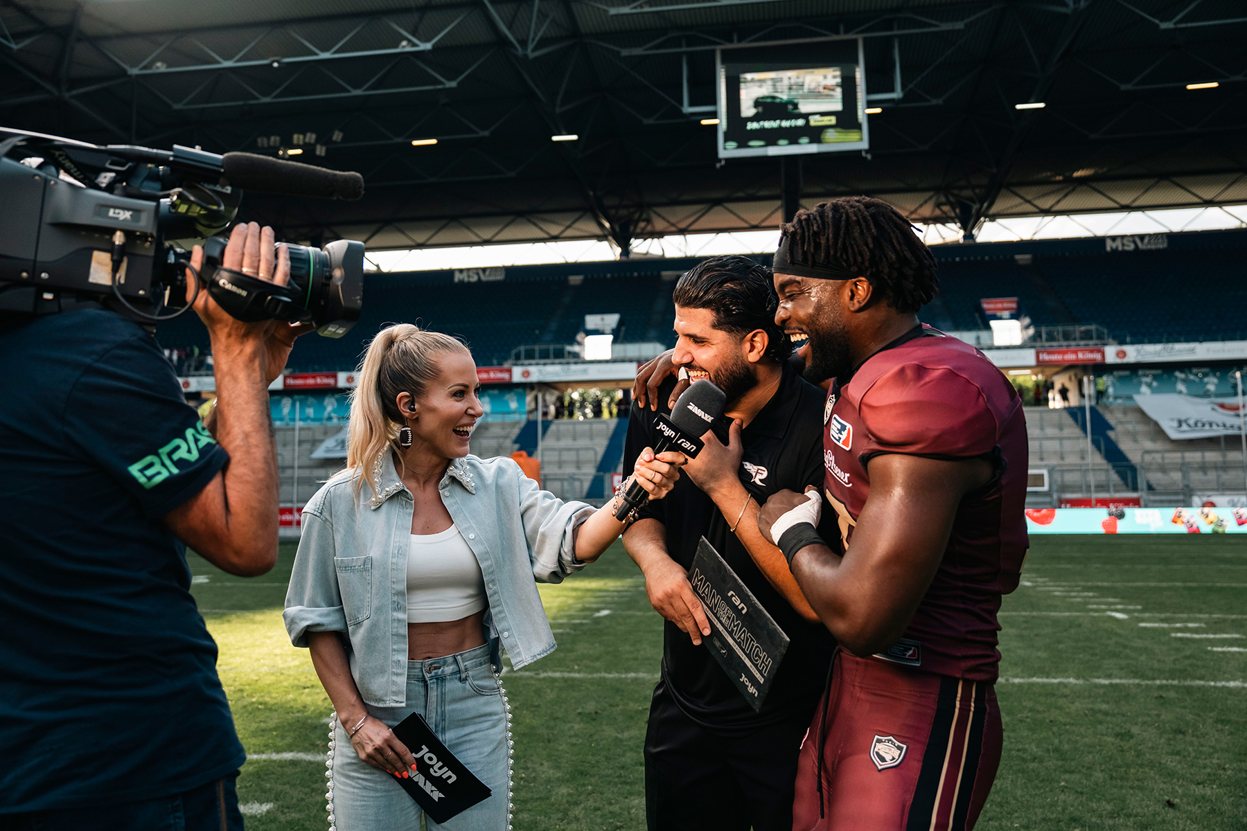 Zehn Touchdowns in den letzten drei Spielen – Harlan Kwofie macht am Ende den Unterschied für die Offense von Rhein Fire. Der umjubelte Receiver richtete den Fokus aber sofort auf die kommende Aufgabe: „Ein guter Tag. Wir haben heute unsere Arbeit gemacht. Jetzt geht es weiter – wir müssen in den kommenden Tagen Gas geben, damit das gegen Nordic Storm genauso aussieht.“